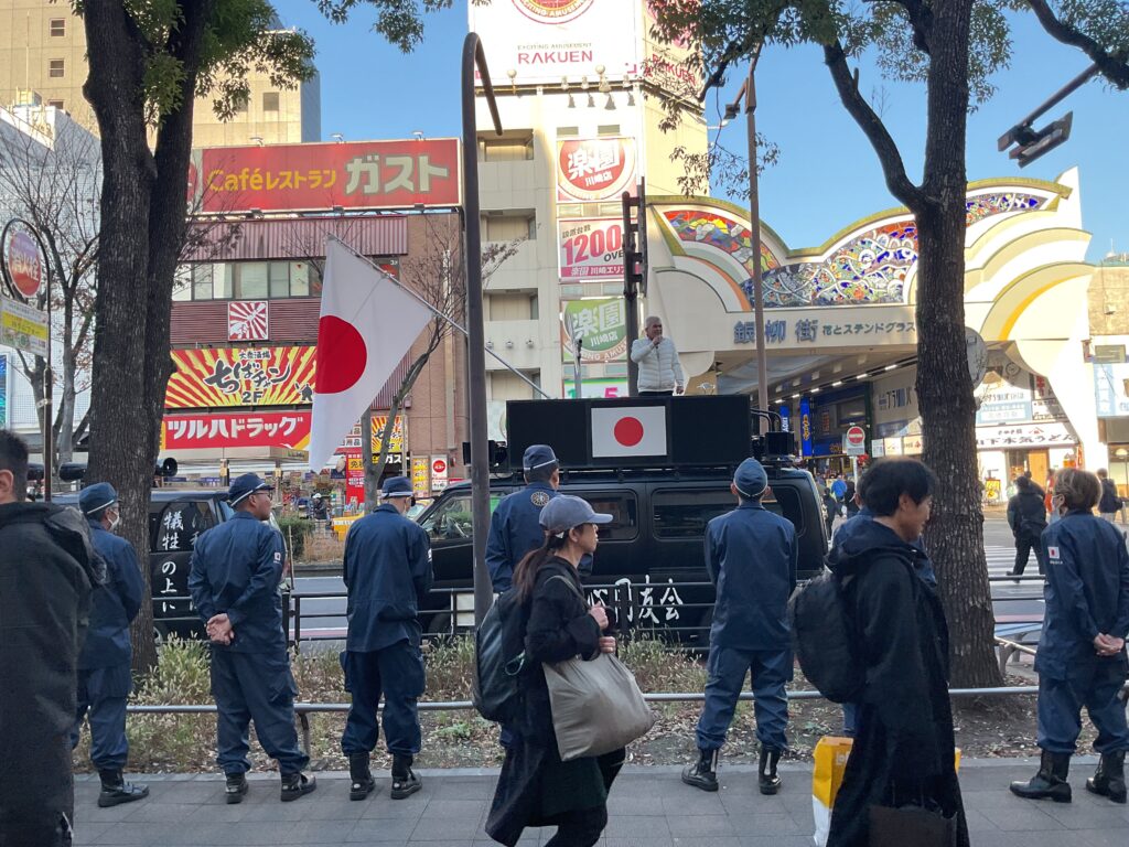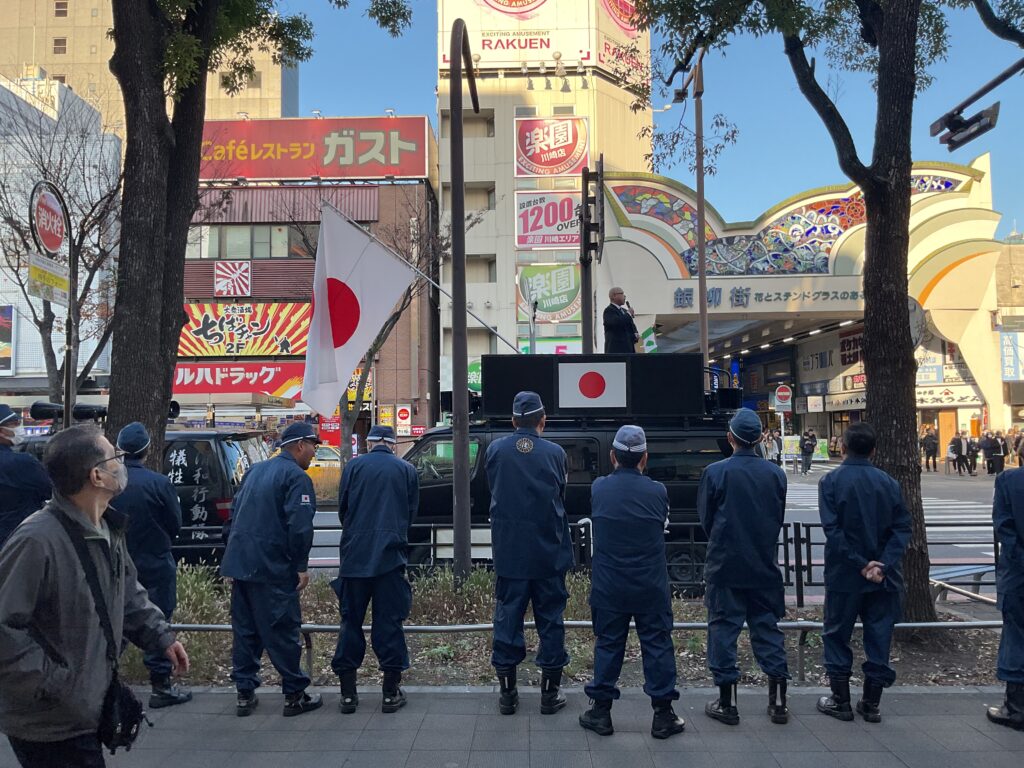 二月六日㈰JR大阪驛前にて開催された『不条理を糾す会』の演説會に參加
