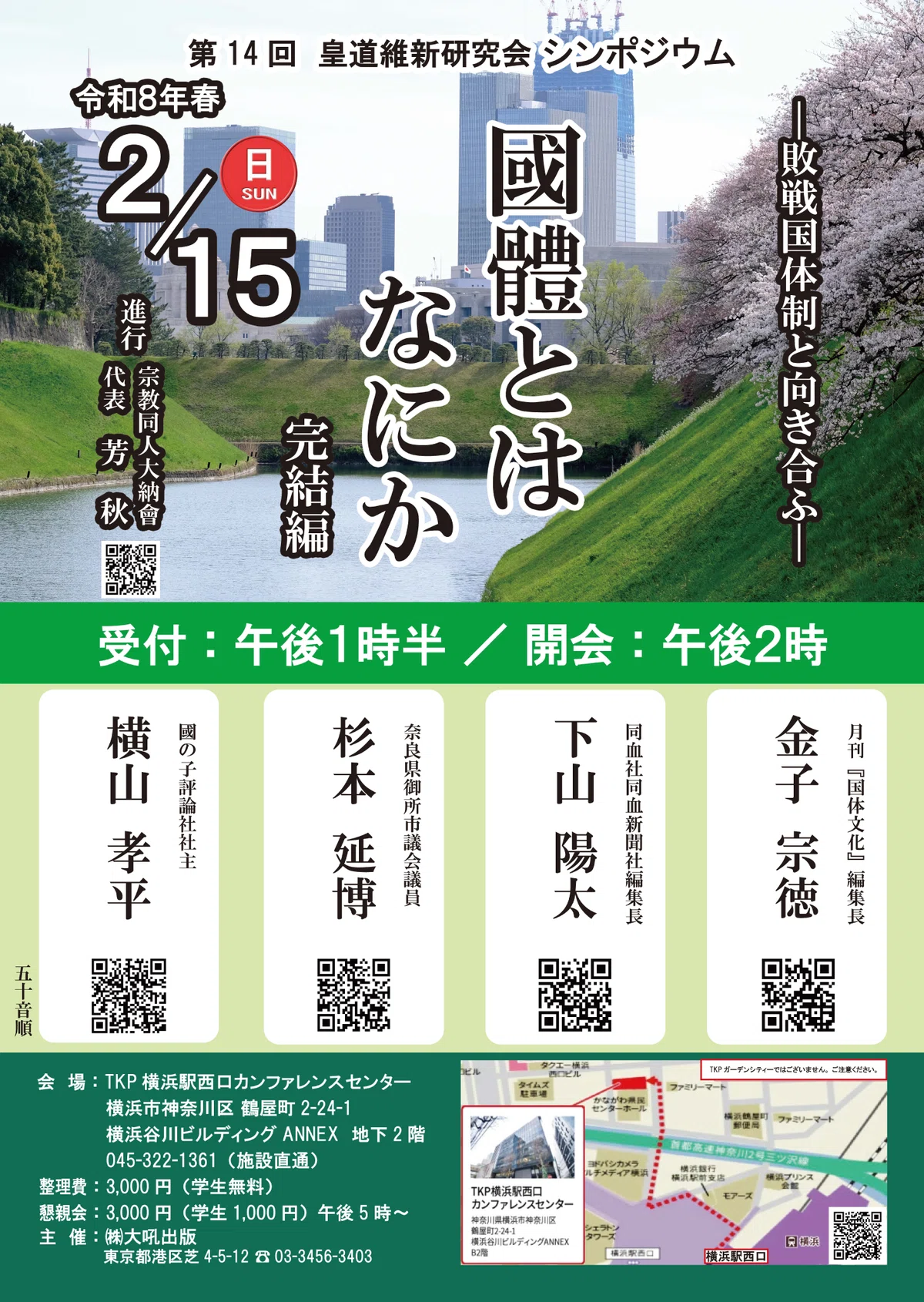 令和八年二月十五日 大吼出版主催「第十四囘 皇道維新研究会」